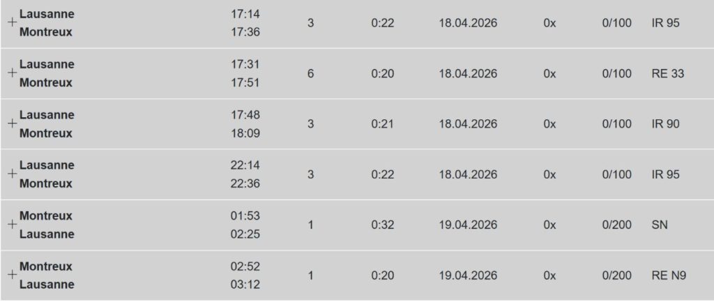 Durant les festivités, des trains seront à votre disposition afin de rejoindre Lausanne-Gare. Ils partiront depuis la gare de Montreux aux horaires suivants :